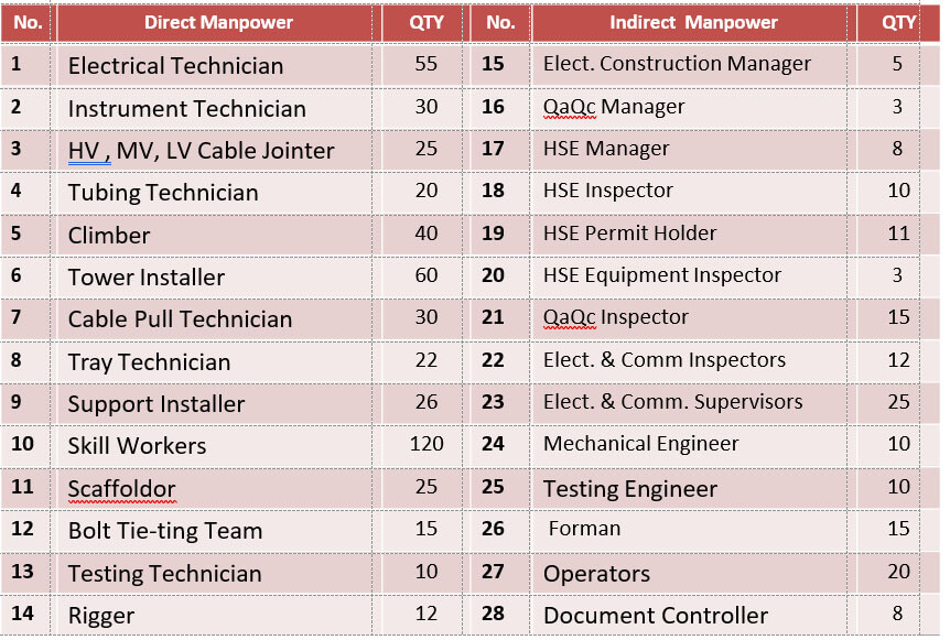 - Bus Duct connection between the TR and SWGR, including the Joint insulation and testing .
